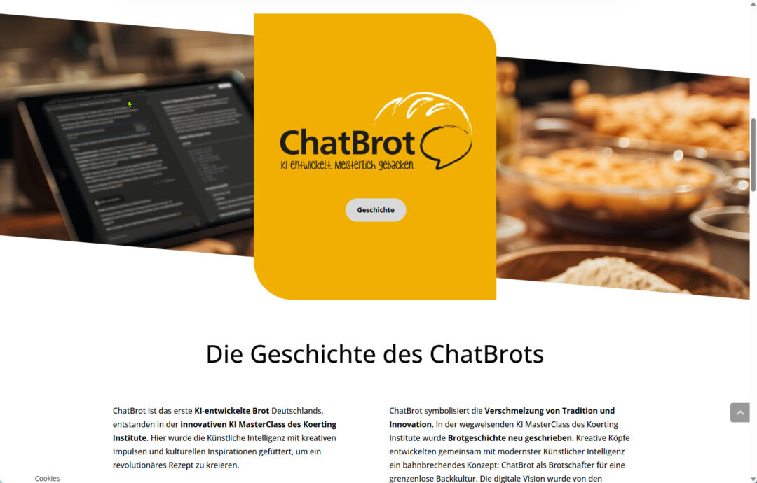ChatBrot.de Website Vom Koerting Institute initiiertes Projekt zur Anwendung von generativer KI im Handwerk und Marketing. Mein Anteil: Erstellung der Website ChatBrot.de Fähigkeiten Veröffentlicht am 12.07.2025 ← Die Kräuterfrau.de Absolut Braut →